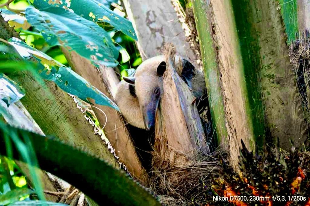 – Cool Fact: Tamanduas do not have teeth; they crush insects with their powerful stomach muscles, however their tail is fully prehensile, helping them navigate through the treetops as they forage for food.